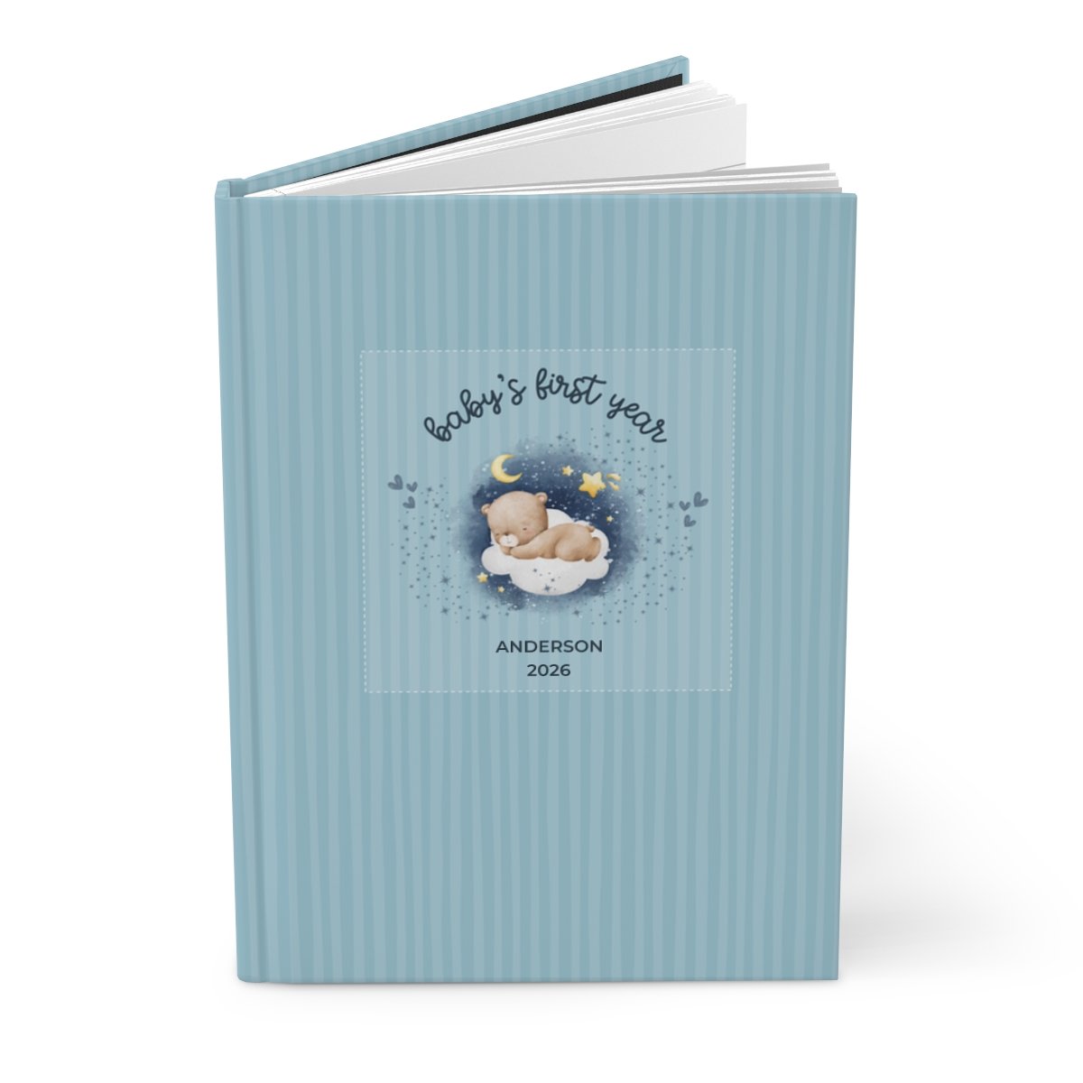 Baby's First Year Journal Book Blue Personalized Gifts - Bear - Hardcover Notebook Matte 5.75"x8"